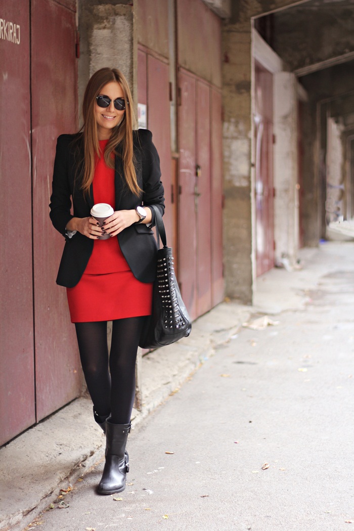 Okay, third in a row is outfit with Diesel watch. Biker boots, studs, retro sunglasses and red dress as cherry on top.